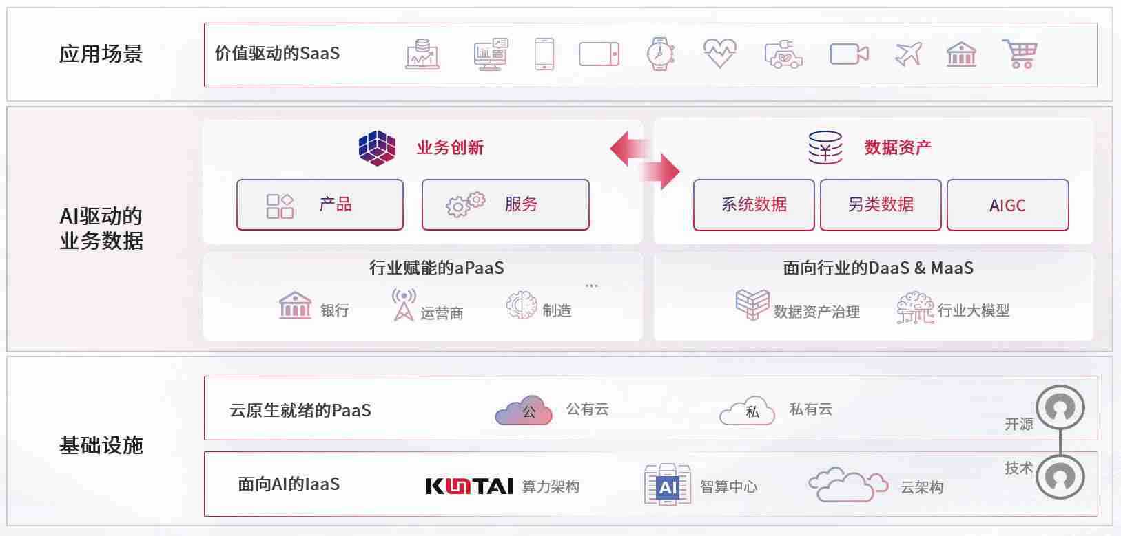 数字时代,,,围绕企业数字化转型的关键要素,,,MANBETX数码开创性的提出数云融合战略和技术体系框架,,,,着力在云原生、、数字原生、、、AI原生和信创产业上架构产品和服务能力,,,,为处在不同数字化转型阶段的快消零售、、汽车、、、、金融、、、医疗、、、、政企、、教育、、、运营商等行业客户提供泛在的敏捷IT能力和融合的数据驱动能力,,构建跨界融合创新的数字业务场景和新业务模式,,,助力企业级客户建立面向未来的核心能力和竞争优势,,全面推动社会的数字化、、、智能化转型升级。。