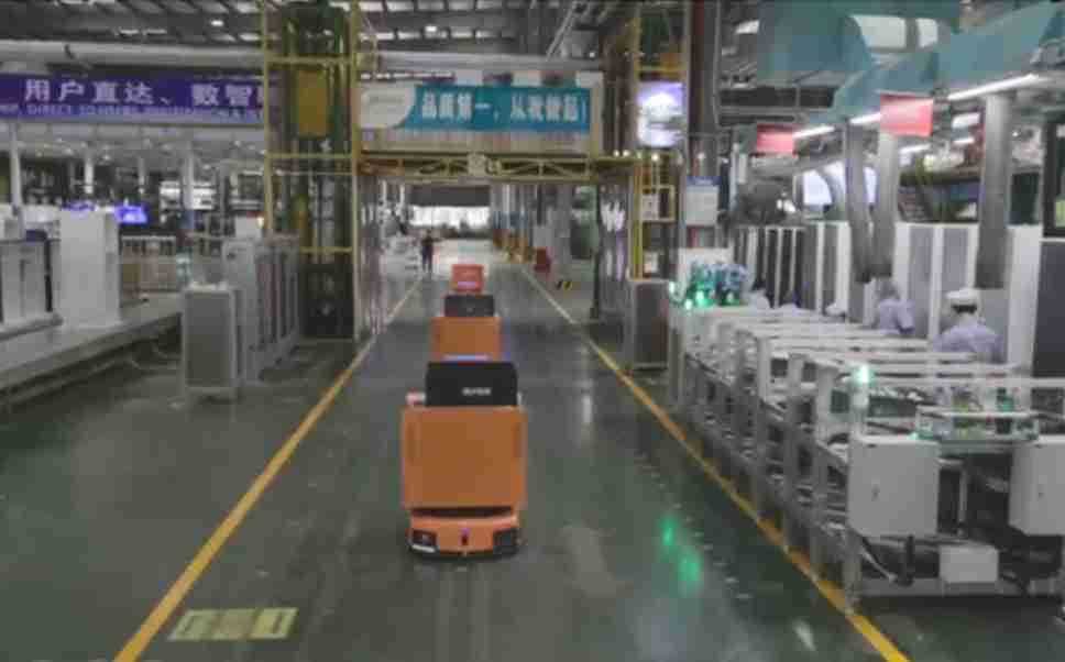 为车载冰箱物流配送打造的智能解决方案,,,包含产中物流通过潜伏举升AMR搬运至线边,,产后成品物流智能仓储,,流程包含产中物流智能齐套入库,,,,线边安灯叫料AMR智能配送至线边,,,成品入库、、出库,,通过无人堆高车机器人,,,,智能仓储管理替代人工作业管理,,,,实现更高存储、、更高效率、、更具柔性化的解决方案。。。。